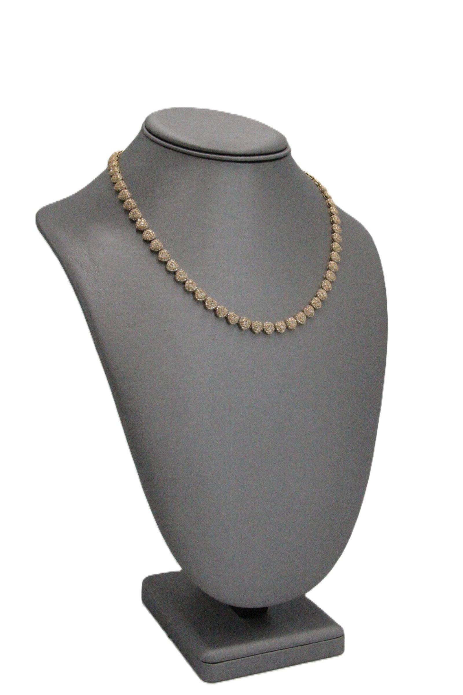 Tennis Necklace Heart Style Full Glitter 14k-Size 18 -27.5gr